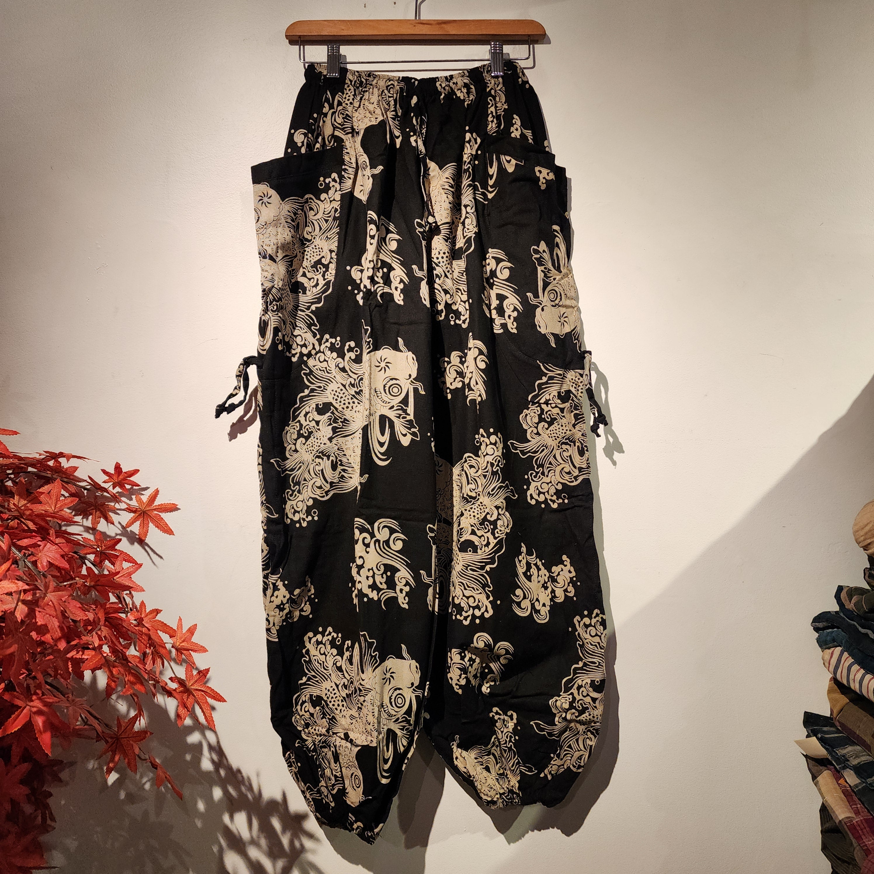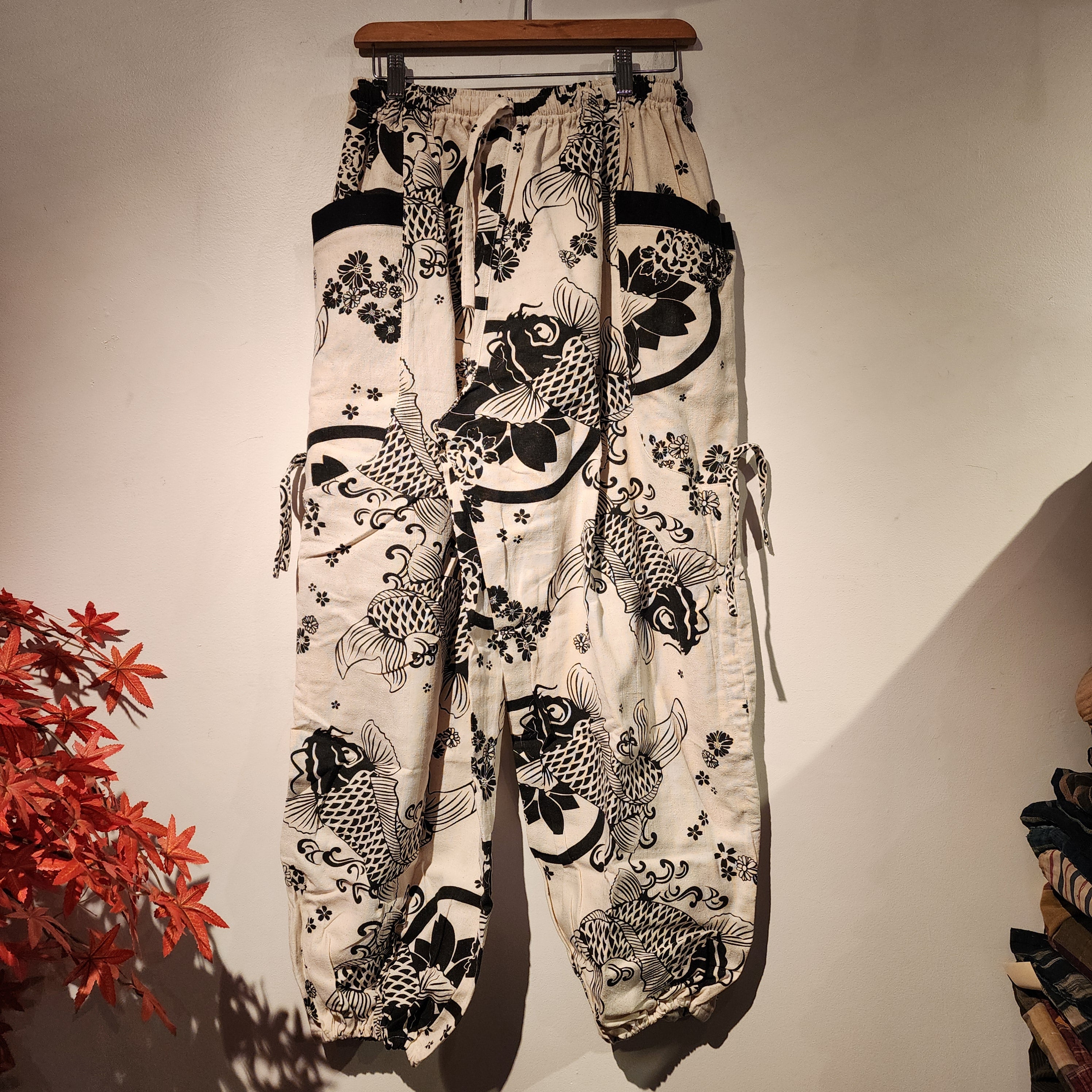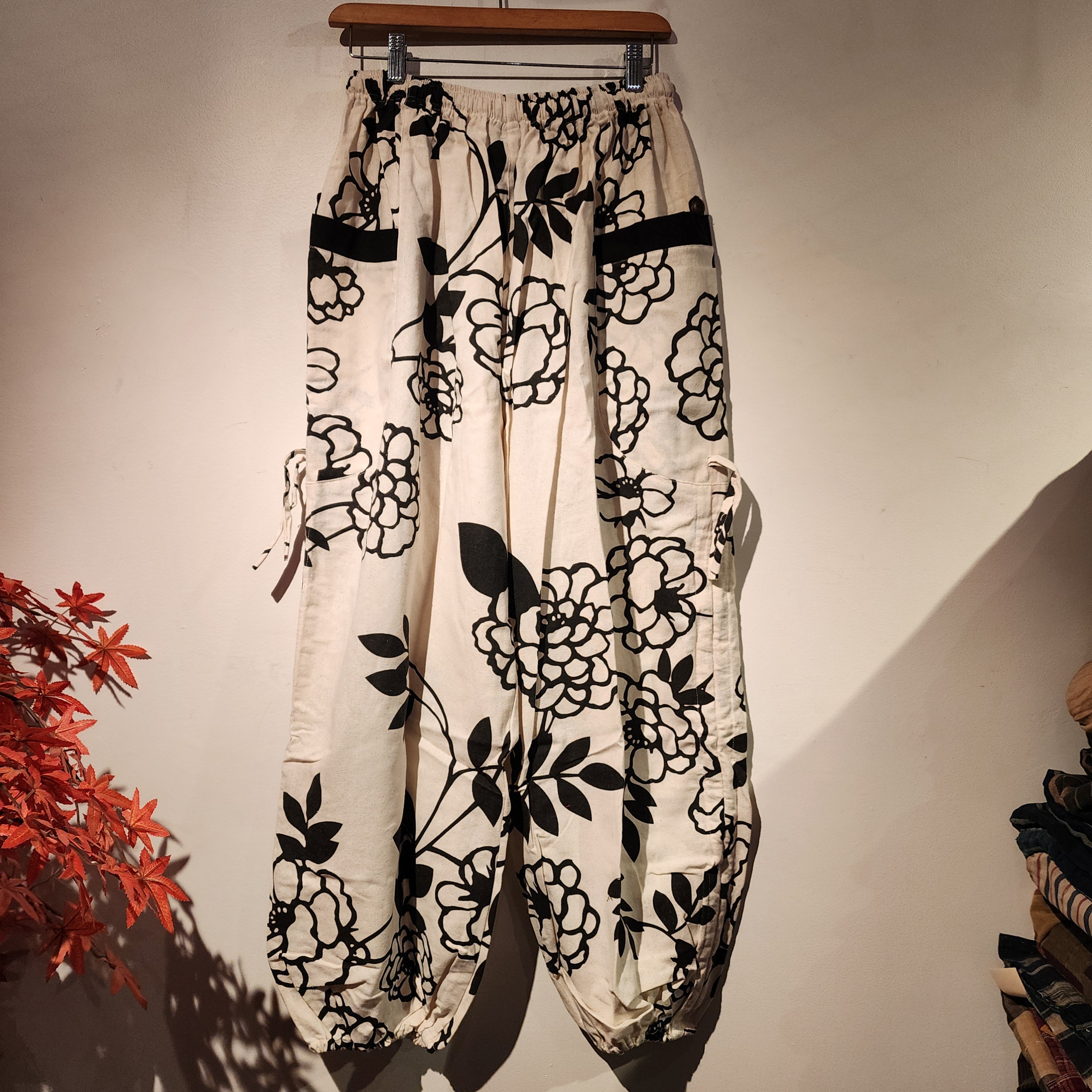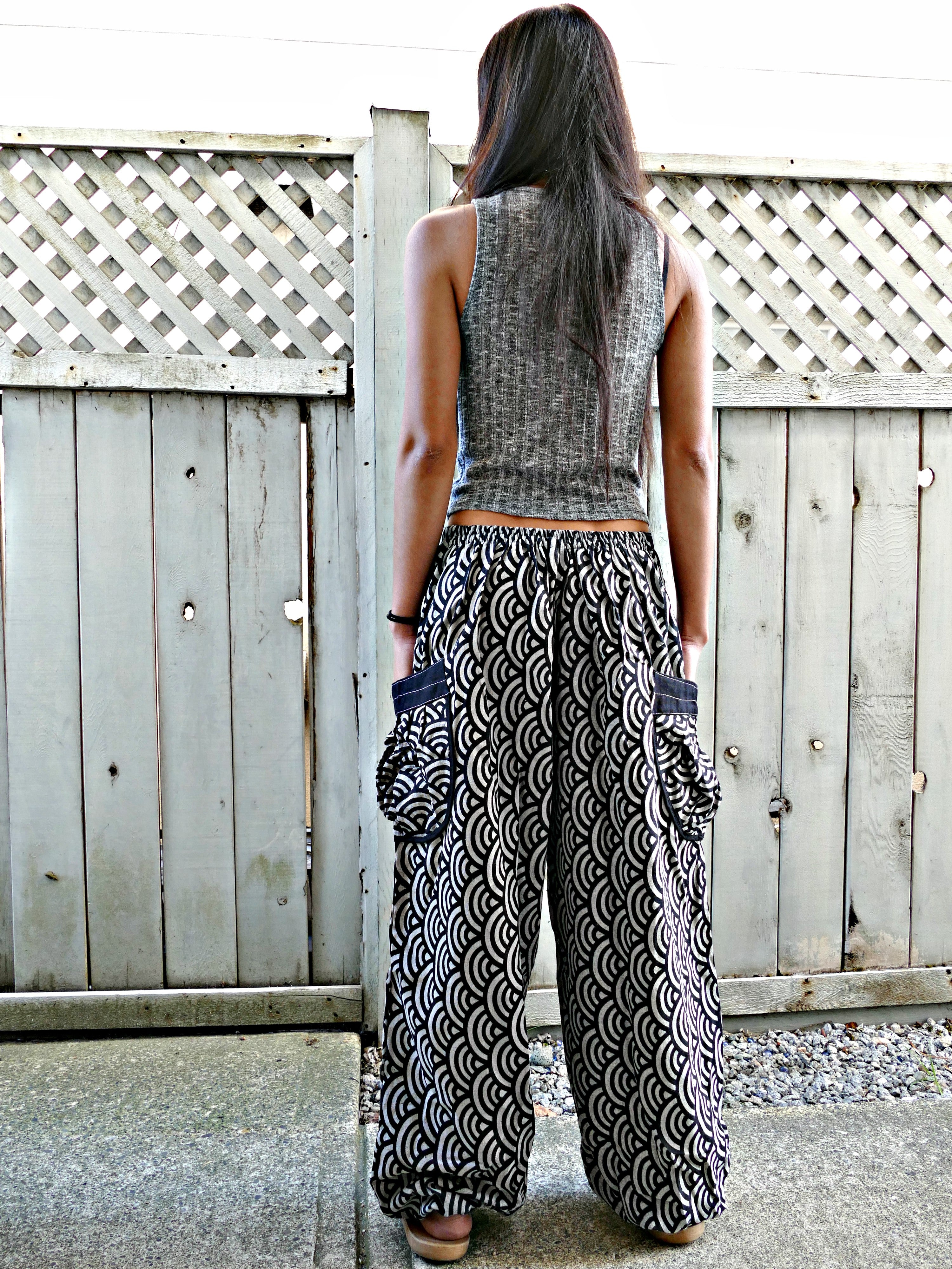 FEATURE: Handmade Ethically, Breathable, Unisex, Comfortable to Wear & Stylish.MATERIAL: 100% Cotton, Ankle elasticSIZE: One size fits most, elastic waist & drawstring (see measurement)GENDER: M/FThese beautiful comfy pants are unique...