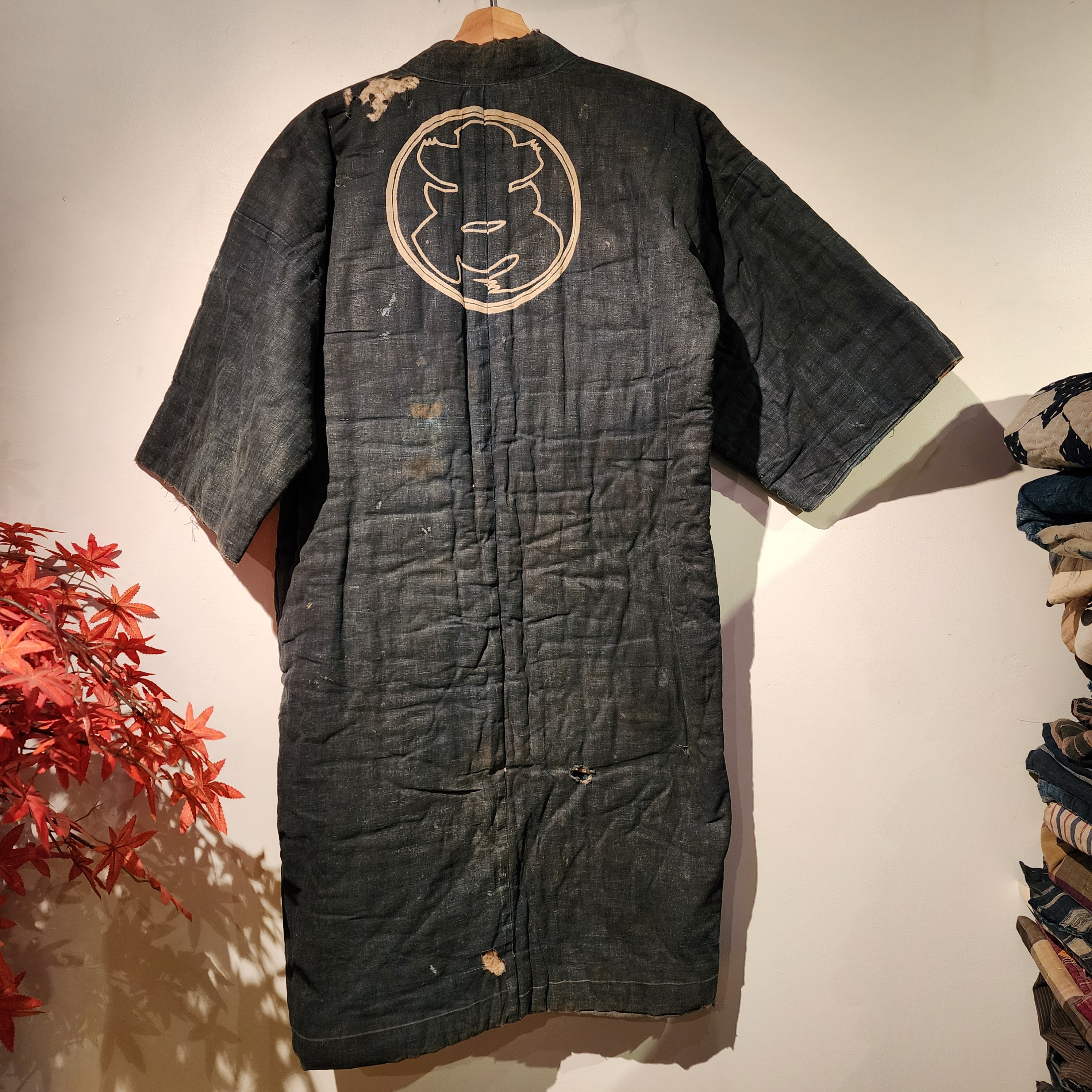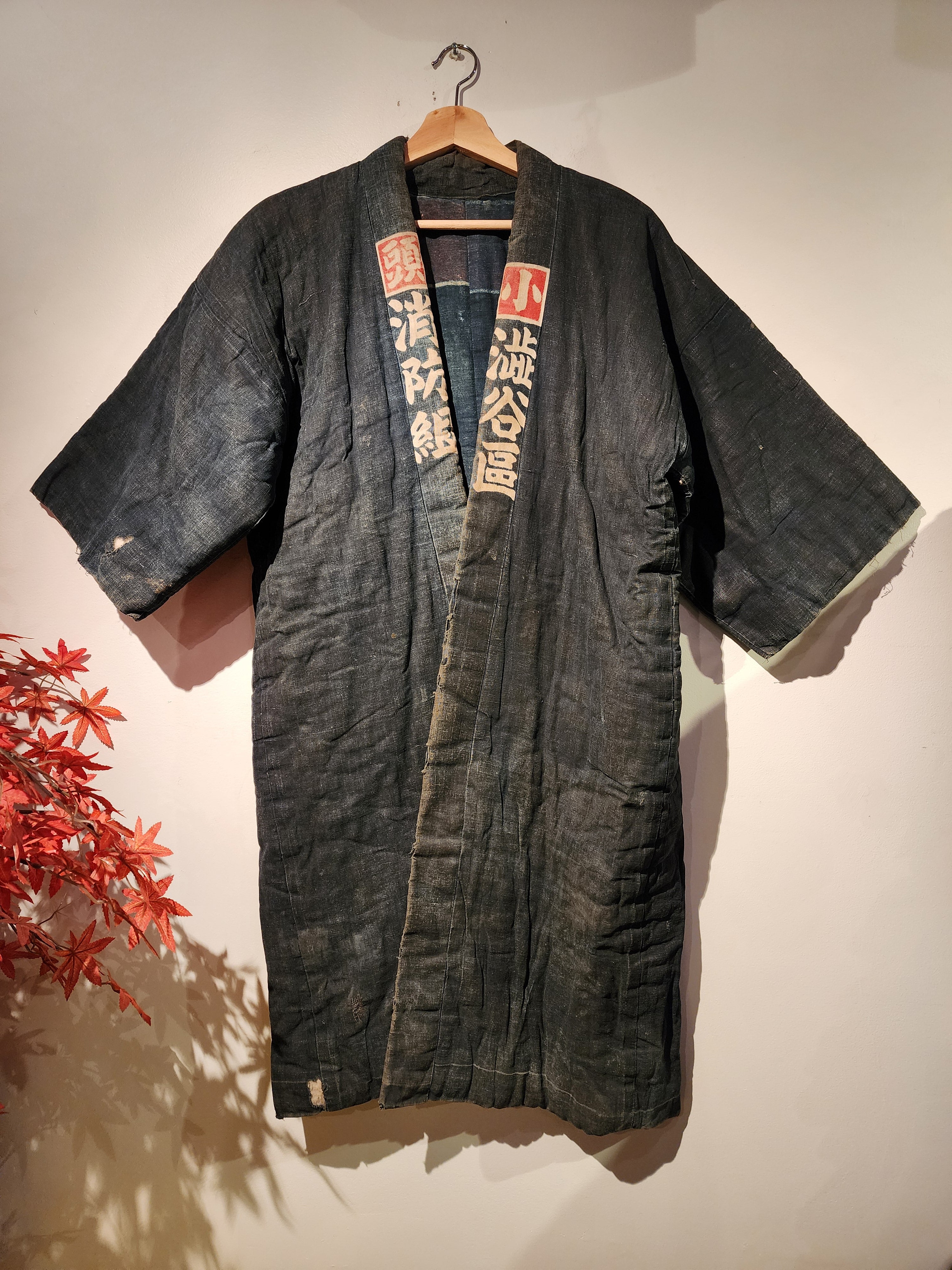 FEATURE: Antique Japanese Fireman Kimono Jacket, roughly from Taisho to early Showa Period 1930-40s. DETAIL: Unisex, Comfortable to Wear & Stylish. This fireman jacket is dyed with...