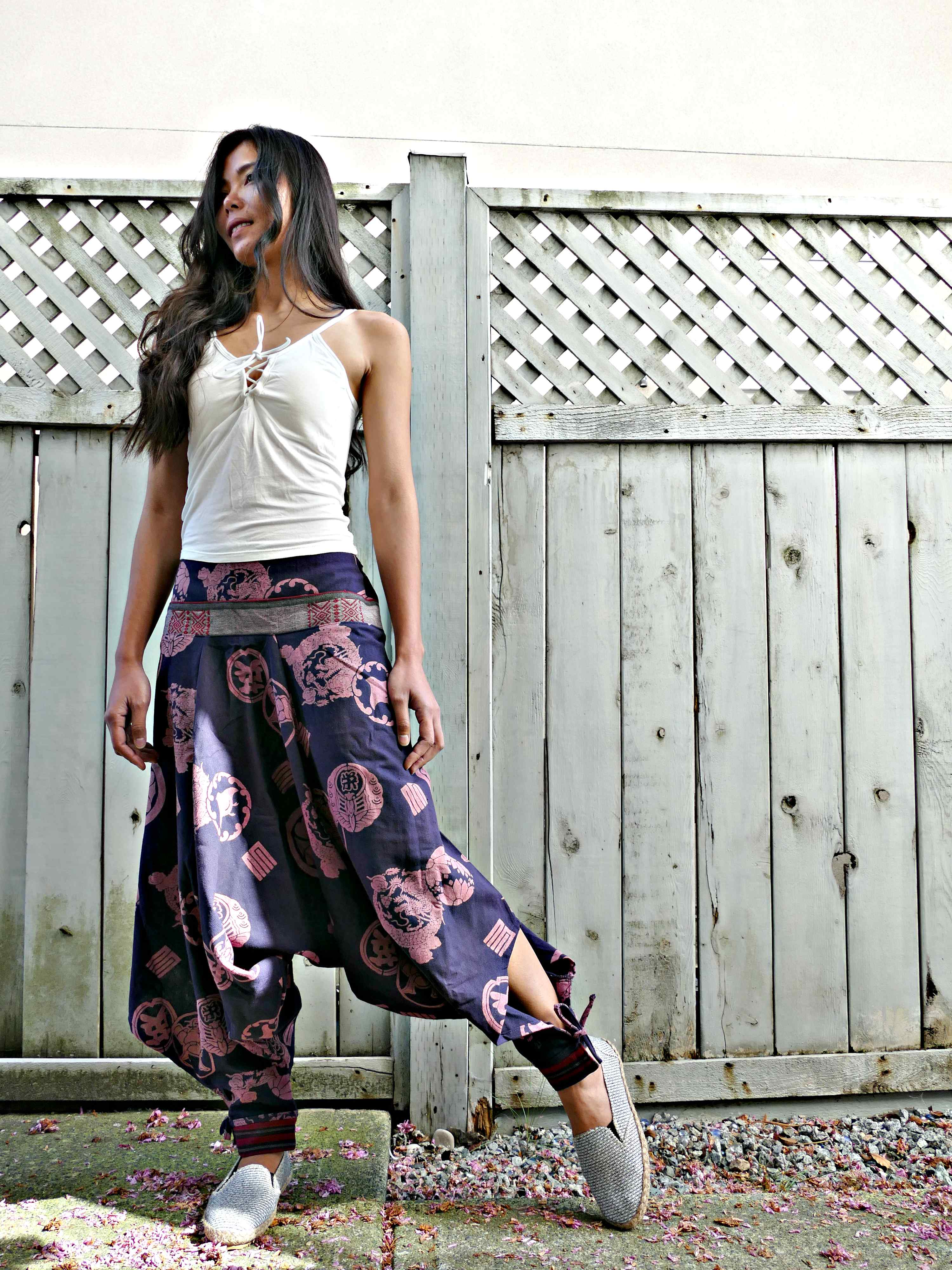 FEATURE: Handmade Ethically, Breathable, Unisex, Comfortable to Wear & Stylish.MATERIAL: 100% Cotton, Handmade Naka Fabric, Ankle StrapsSIZE: One size fits most, elastic waist (see measurement below)COLOUR: Black/GreyGENDER: M/FThese beautiful hill...