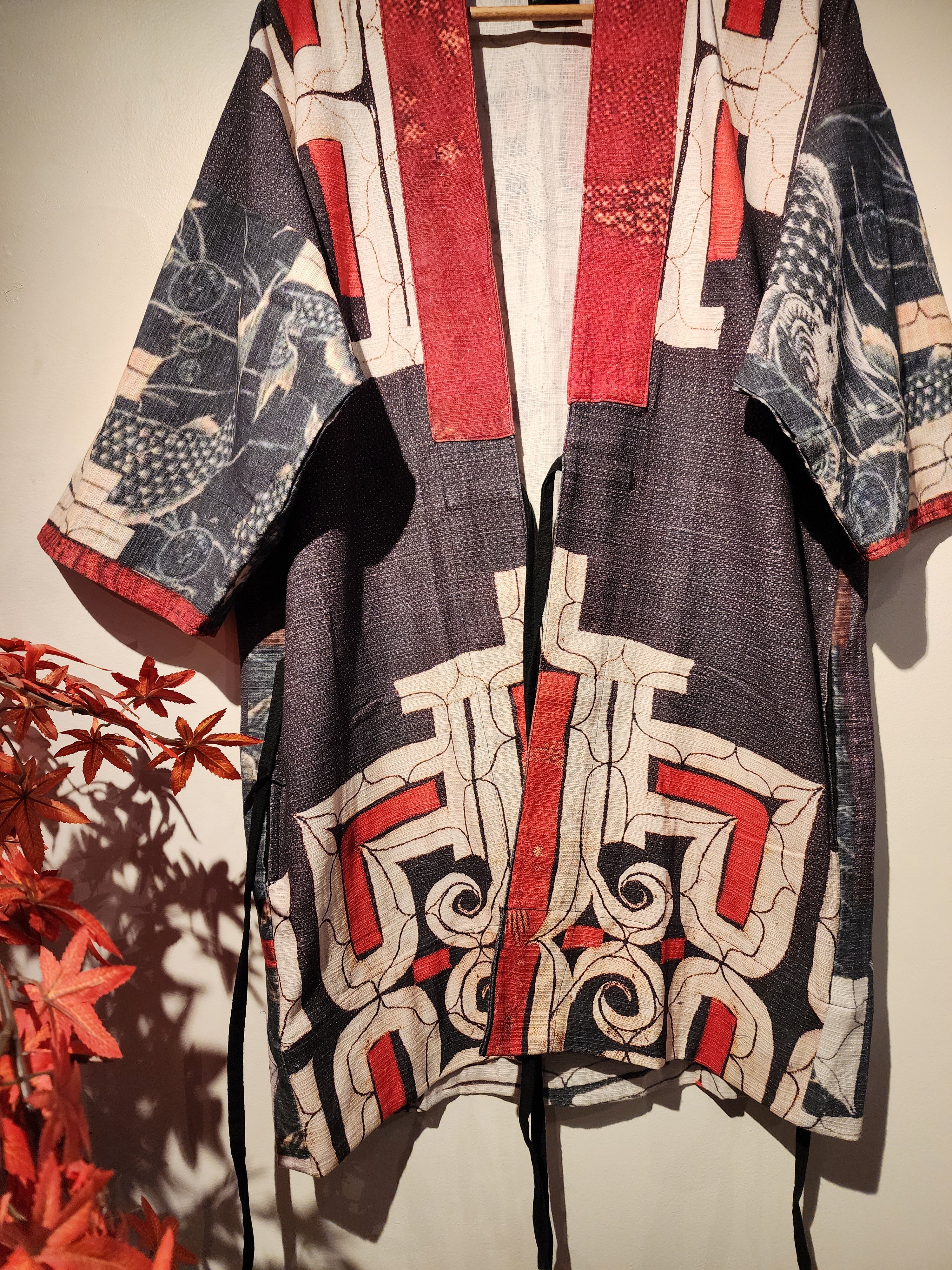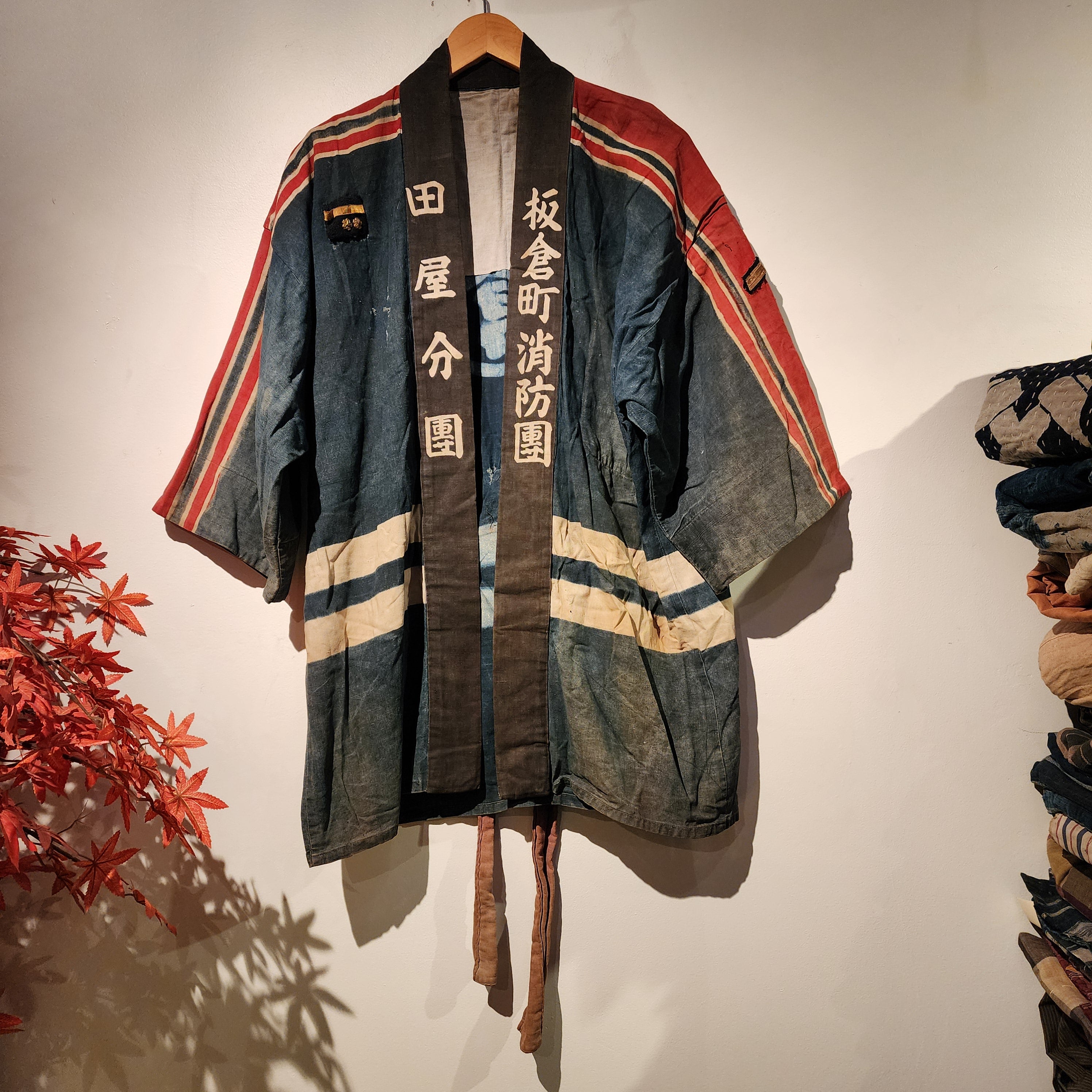 FEATURE: Antique Japanese Fireman Kimono Jacket, roughly from Taisho to early Showa Period 1930-40s. DETAIL: Unisex, Comfortable to Wear & Stylish. This fireman jacket is dyed with...