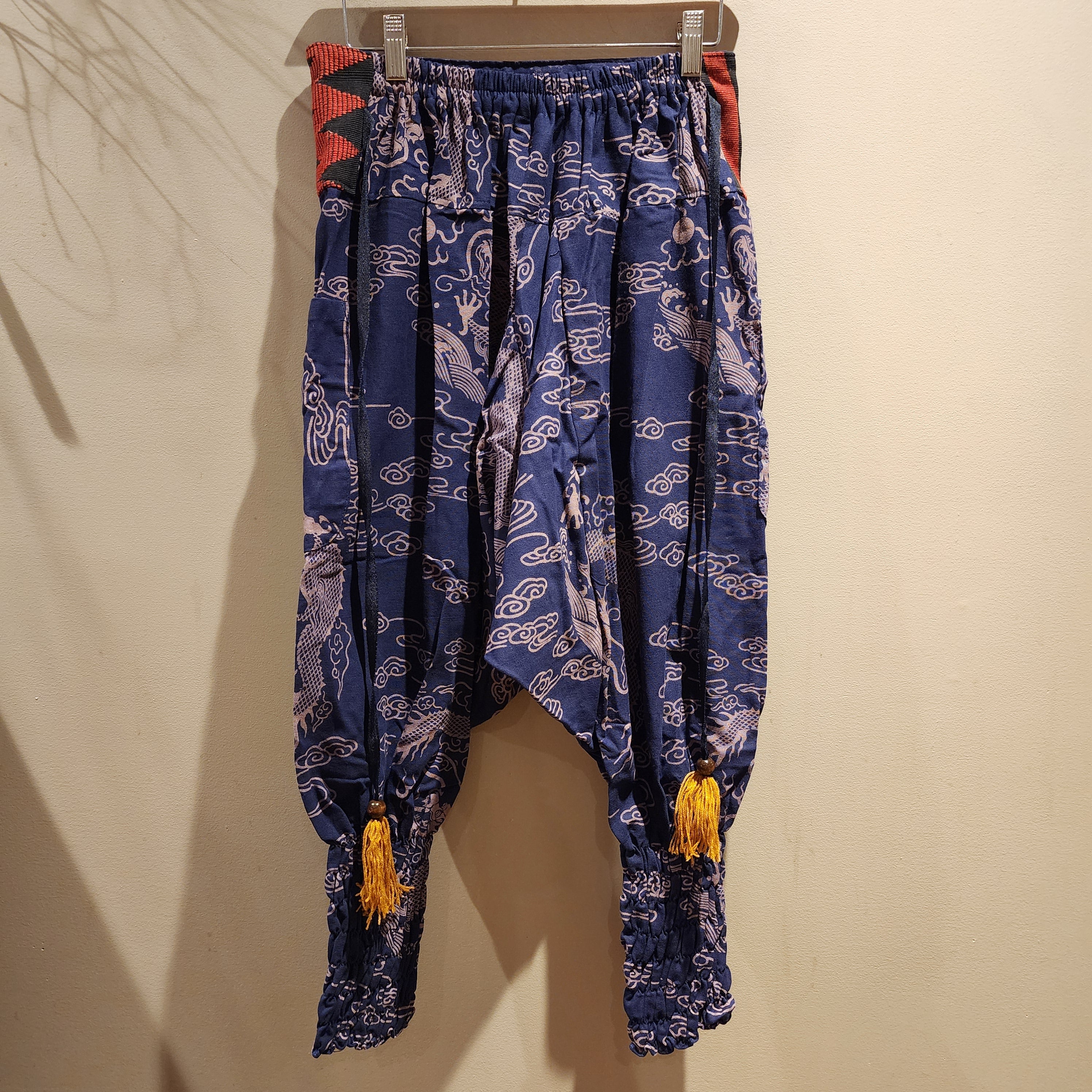 FEATURE: Handmade Ethically, Breathable, Unisex, Comfortable to Wear & Stylish. 1 pocketMATERIAL: 100% Cotton, Handmade, Ankle ElasticSIZE: One size fits most, elastic waist (see measurement)COLOUR: vintage blueGENDER: M/FThis beautiful Ninja...