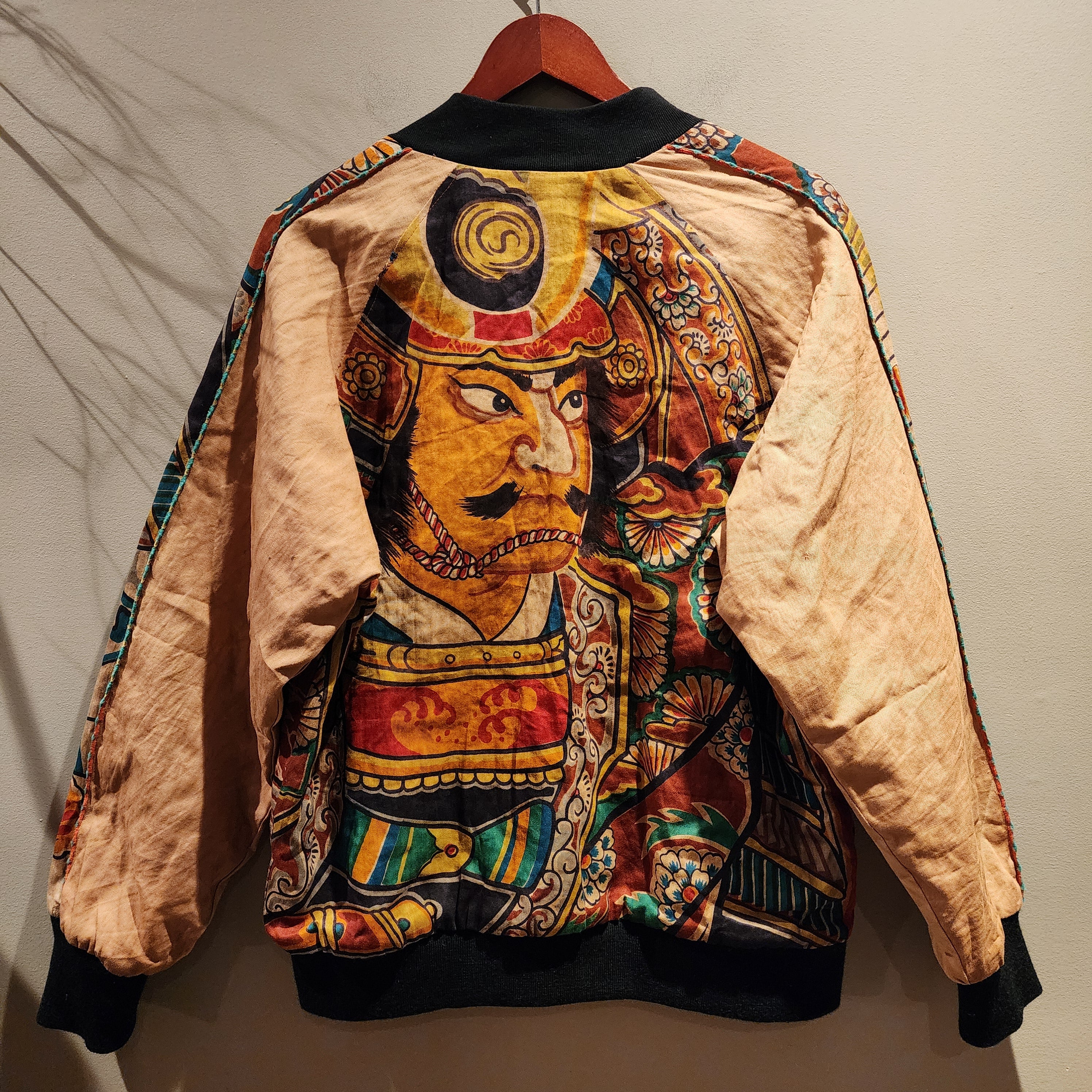 This Sukajan Design Jacket is made with vintage Japanese Nobori fabric and dyed with Kakishibu Persimmon Tannin natural dye. Kakishibu is a traditional Japanese dying technique for a natural brown...